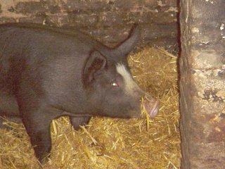 Abschluss noch eine Reihe von Kaninchen und ein schwarzes Schwein. Zum Fotografieren war